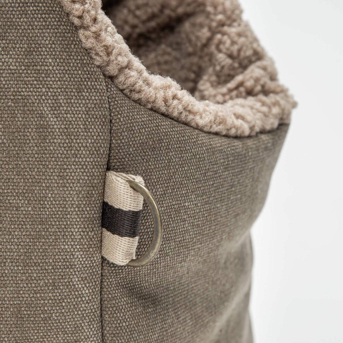 Мінімалістична сумка-переноска для собак із м’яким «тедді» підкладом у кольорі canvas sand — це зручне мобільне місце для сну та відпочинку вашого улюбленця під час подорожей.