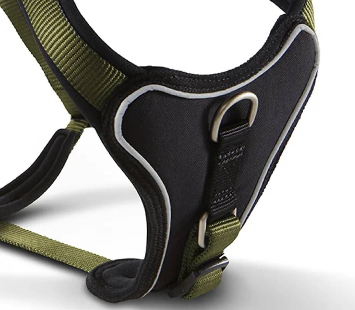 Міцне кільце повідця міцно пришито до шлеї і витримує навіть сильну тягу. Особливістю є неопренова м'яка нагрудна пластина, яка забезпечує чудовий розподіл ваги, коли собака тягне повідець.