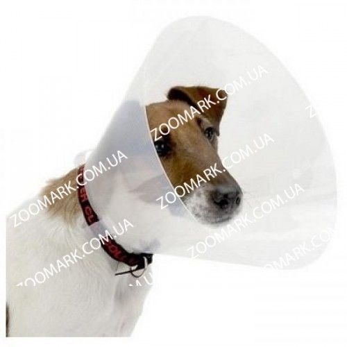 Захисний комір прозорий пластиковий комір у формі усіченого конуса. Комір забезпечений чотирма радіальними смужками для фіксації шлейки або нашийника.Використання захисного коміра запобігає самоповреждение тваринного (зализування, расцарапивание, розчісування ран на голові, шиї і тілі), тим самим полегшуючи і прискорюючи процес загоєння ран.Конусоподібна форма не заважає тварині при годуванні, під час сну і прогулянок.Прозорість коміра дає можливість тварині не втрачати орієнтації в просторі.Комір практичний, гігієнічний і простий у застосуванні.ПОКАЗАННЯ: Захисний комір призначений для запобігання розчісування або разлизивания тіла, голови і шиї при лікуванні поранень, опіків і захворювань шкіри у тварин.У післяопераційний період для запобігання розчісування швів.Схема складання коміраНакласти правий край з вирізаними прямокутниками на парні прорізи зверху.Довгий хлястик заправити в прорізи, які видно в прямокутних вирізах. Короткі хлястики заправити в парні прорізи зверху.Комір в зборі. Через отримані петлі протягують нашийник для собаки або шлею, бинт, марлю або тасьму для кішок.