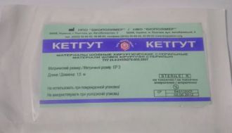 Кетгут являє собою очищену сполучну тканину (головним чином колаген) підслизового шару тонкого кишечника овець або серозного шару тонкого кишечника великої рогатої худоби, який після механічної обробки та полірування перетворюється на практично монофіламентну нитку. Вміст колагену в нитці визначає її міцність та здатність розсмоктуватися у тканинах організму без побічних реакцій.Фізичні властивостіМонофіламентна полірована натуральна нитка розсмоктується.ЗастосуванняПри апроксимації мяких тканин та накладення лігатур, у тому числі при офтальмологічних операціях.Особливості: після імплантації у тканині, кетгут викликає легку запальну реакцію, характерну для реакцій на сторонні тіла та матеріали. Надалі кетгут втрачає міцність на розтяг, і тільки потім свою масу під дією протеолітичних ферментів.Швидкість розсмоктування кетгуту залежить від типу тканин (скоріше абсорбується в тканинах з підвищеним рівнем протеолітичних ферментів, наприклад, там, де на нього впливають секрети шлунка, шийки матки та ін.), стану тканин (в інфікованих тканинах швидше), а також загального стану здоровя пацієнта.Міцність ниток полірованого кетгуту зберігається лише 7-10 днів після імплантації, а повне розсмоктування швів відбувається у строк до 70 днів. Використання кетгуту протипоказане пацієнтам із підвищеною чутливістю або алергією до колагену, адже це може призвести до вразливої реакції тканин від легкого подразнення до відторгнення швів.