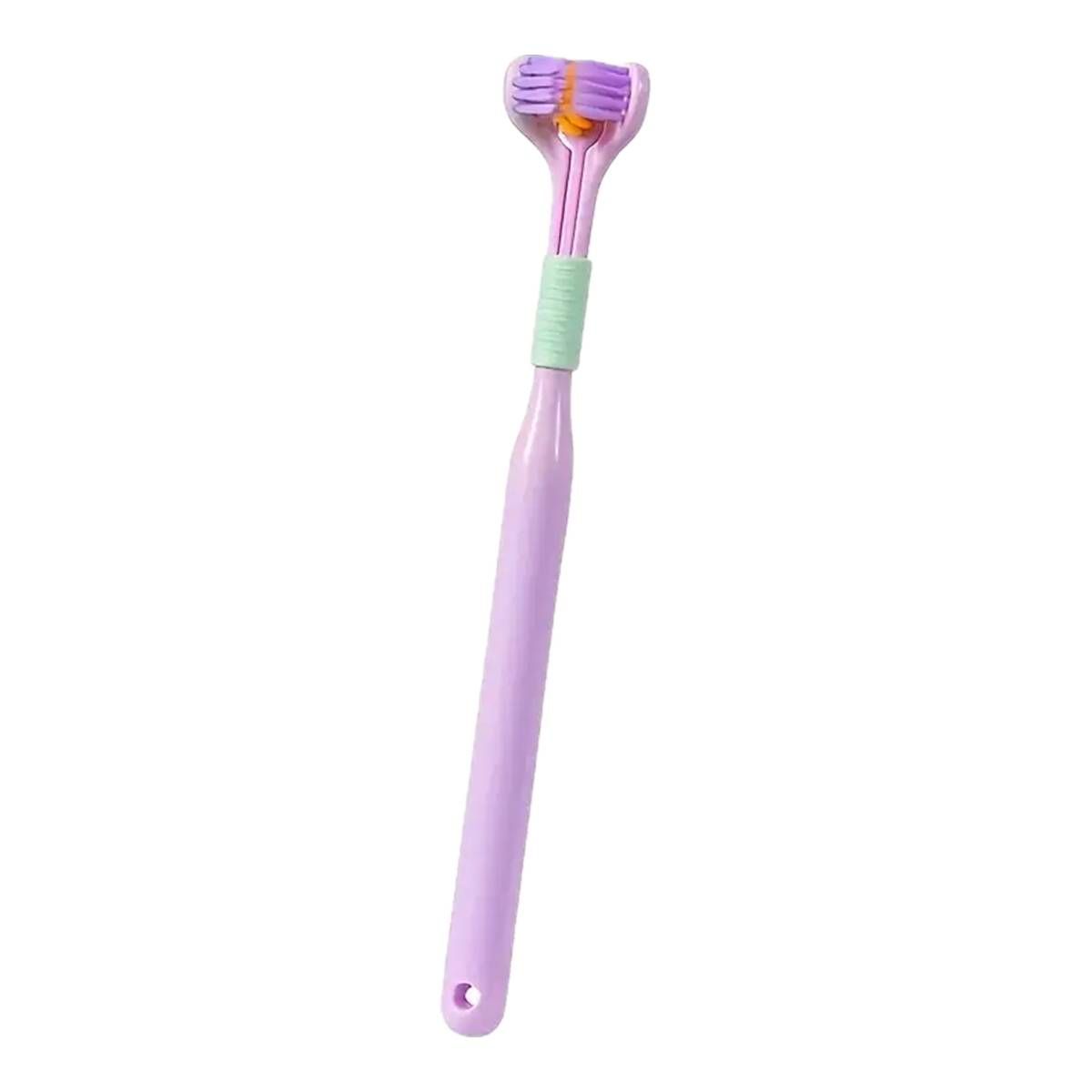 Тристороння м’яка зубна щітка для собак — це зручний інструмент для ефективного догляду за зубами та яснами вашого улюбленця. Завдяки спеціальній конструкції з трьома робочими поверхнями вона одночасно очищає зовнішню, внутрішню та жувальну сторону зубів.