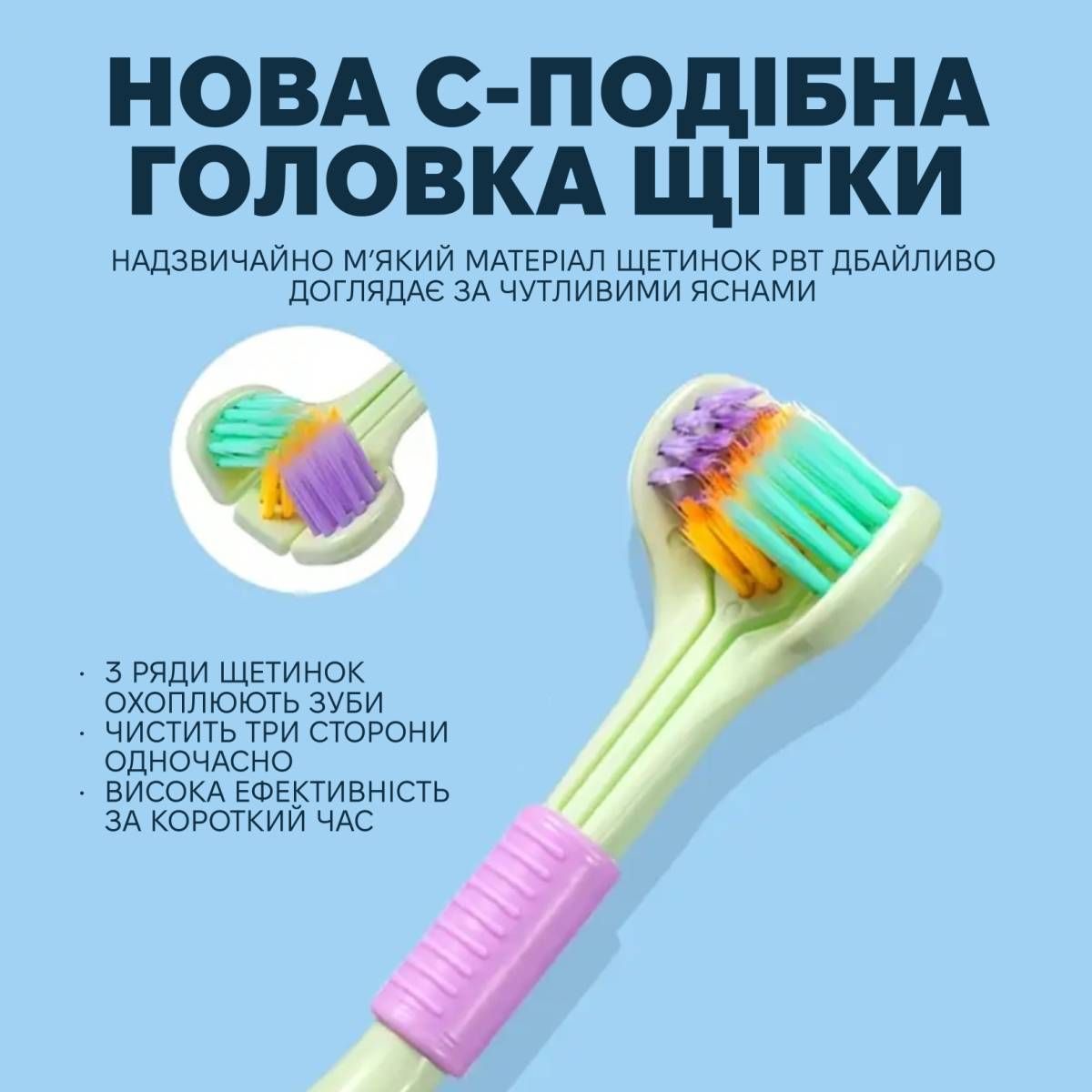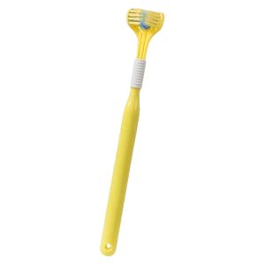 Тристороння м’яка зубна щітка для собак — це зручний інструмент для ефективного догляду за зубами та яснами вашого улюбленця. Завдяки спеціальній конструкції з трьома робочими поверхнями вона одночасно очищає зовнішню, внутрішню та жувальну сторону зубів.