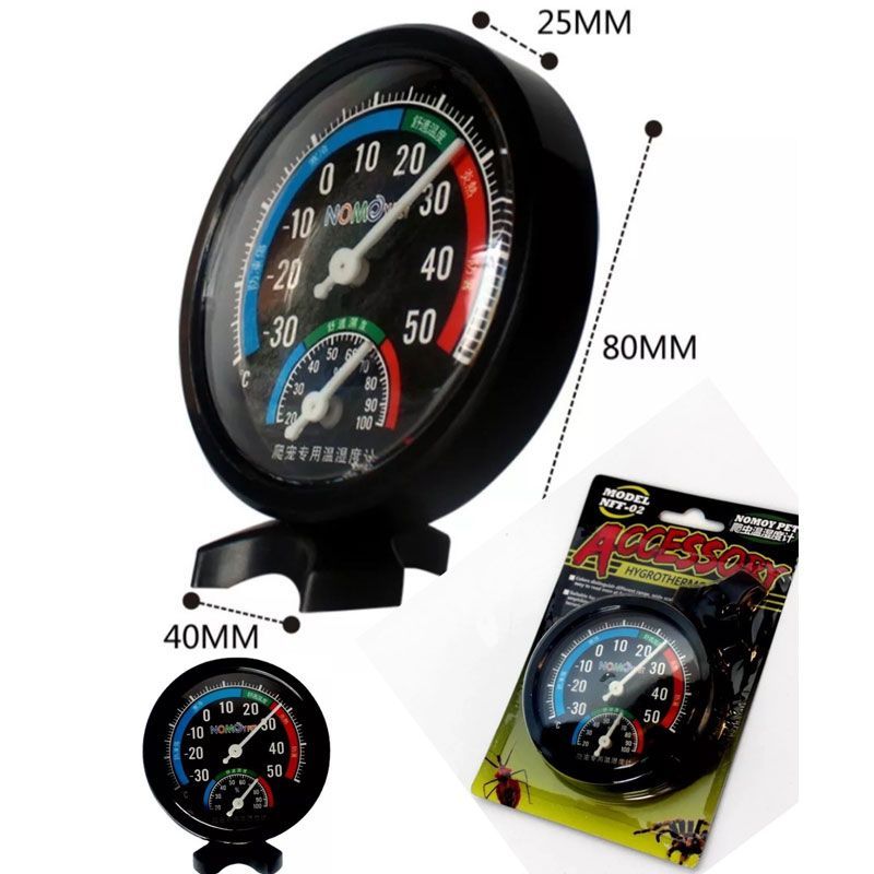 Механічний гігрометр-термометр дозволяє стежити за температурою і вологістю в навколишньому середовищі.для точного контролю температури і вологості в тераріумі, паллюдаріумі, квартирідіапазон температур від -30 до + 50Сдіапазон вологості від 0 до 100легка установка на наклейкуУвага: не встановлюйте в безпосередній близькості від джерела тепла і зволоження