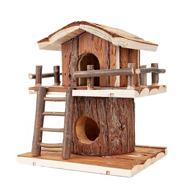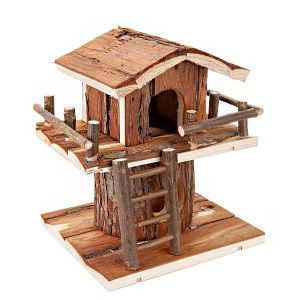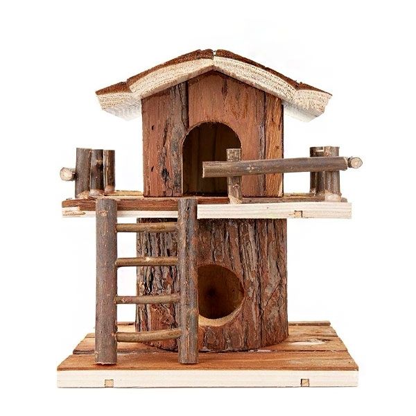 Двоярусний будинок забезпечує вдвічі більше активності та місць для дослідження. Виготовлений з натуральної деревини, яка не оброблена та не лакована. Укриття розміщене на деревяному цоколі, а наверх веде драбина.Гризуни люблять лазити, тому такий будиночок стане не тільки привабливим місцем для відпочинку, але і способом активного відпочинку.Розміри будиночка 18х16х 21,5 см. Підходить для дрібних гризунів, таких як мініатюрні хомяки та миші. Будиночок легко підтримувати в чистоті, оскільки він знімний. Міцна деревяна основа забезпечує стійкість, і ваш вихованець не перекине її під час гри.