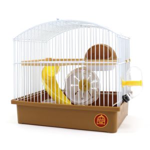 Клітка оснащена за останнім словом техніки: будиночок у формі космічного корабля (летаючої тарілки) з балконом, американська гірка та колесо на підшипнику, поїлка, годівничка, ручка для перенесення.Ця клітка чудово підходить для різних видів хомяків, як карликових, так і сирійських, завдяки маленькій відстані між прутами. Практичні та великі двері лицьова та на даху підкреслюють зручність та оригінальність дизайну цієї моделі. Клітка надійна та практична, виготовлена з високоякісних матеріалів.
