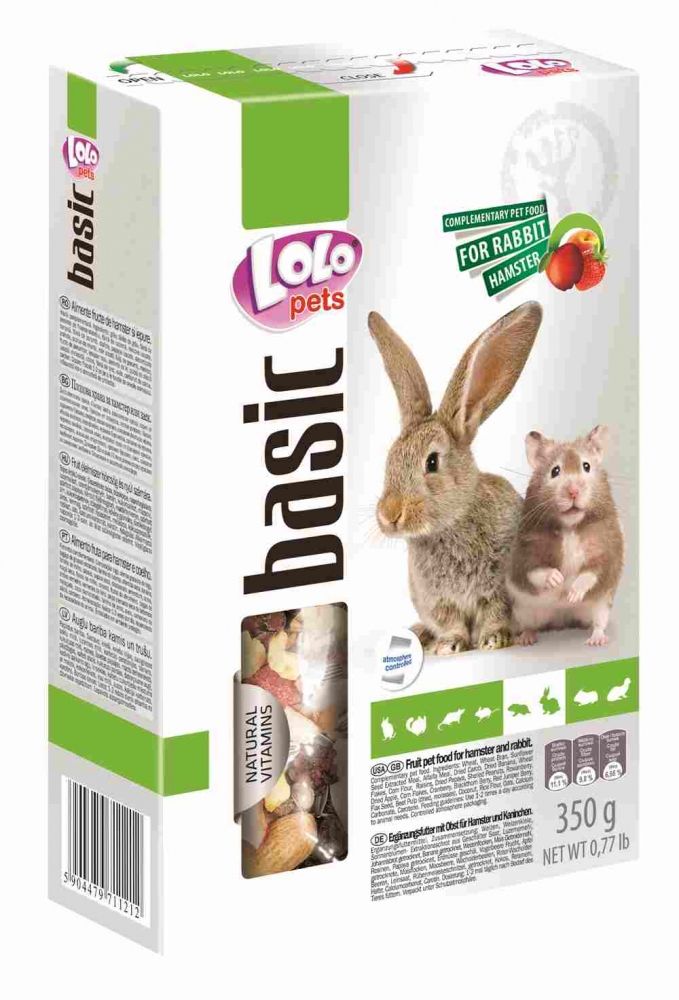 Lolopets Корм для хомячків і кроликів фруктовий 350г 71121Основний корм для домашніх гризунів від компанії Лолопетс. Містить сушені ягоди і горіхи.