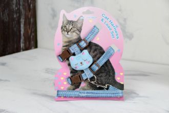 Комплект Котик, шлея з повідцем для кішки блакитна Обєм грудей 29-43 см