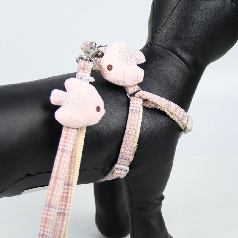 Шлея з повідцем рибка 1,0 х120 см клітинка Трояндовий