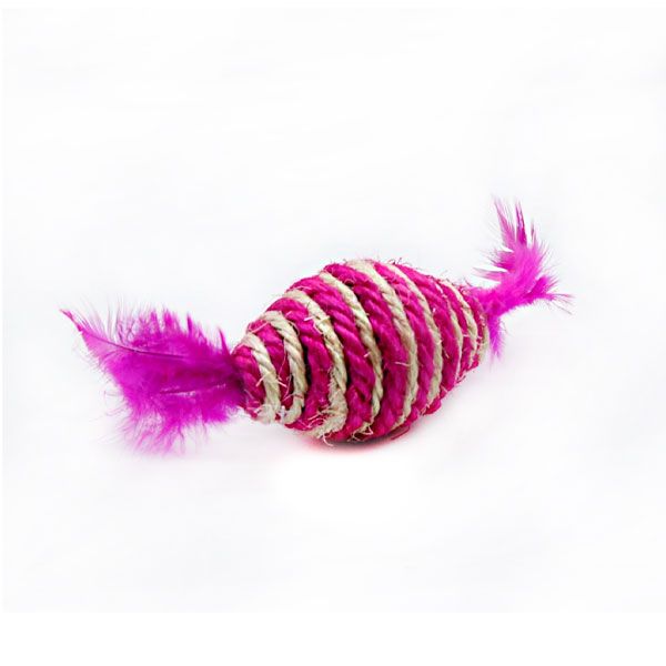 Іграшка із сизалевої мотузки з кольоровими пірям для кішок і кошенят.Викликає інтерес і привертає до гри домашнього вихованця, розвиває інстинкт, навчає і приносить позитивні емоції своїм зовнішнім виглядом.Переваги:Міцна сизалева нитка витримує кігті і підходить для кусання, жування в період гри.Сприяє масажу ясен і очищення зубів.Задовільняє природну потребу щось кусати і дряпати.Виготовлена з натурального волокна (сизаль).