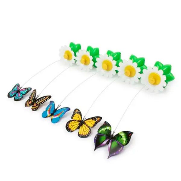Дуже цікава іграшка для вашого улюбленця.Яскрава квітка - ромашка з металевою волосінню та яскравим метеликом.Така іграшка допоможе зайняти вільний час вашого котика та уникнути появи подряпин на меблях і підлозі.Метелик реагує на дотики, може змінювати напрямок польоту.Дуже кумедна і яскрава іграшка.