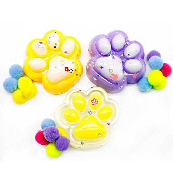 Сквіш у вигляді котячої лапки - це оригінальна іграшка-антистрес з унікальним дизайном і яскравими декоративними елементами.Лапка присипана мякими ворсинками, в комплекті мякі кульки-помпони, що робить її особливо привабливою.