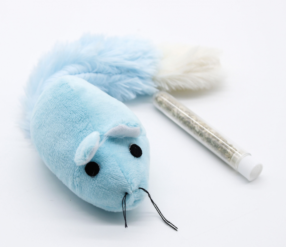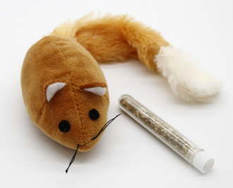 Ця легка і цікава іграшка для домашніх кішок підходить для того, щоб ваша кішка могла годинами грати. Виготовлена з мякого плюшу, приємного на дотик, і довгого хутряного хвоста. У комплекті йде флакон із сухою котячою мятою (CatNip), якою натирається іграшка для привернення уваги кішки. Іграшка 27 см - досить велика, щоб не загубитися під диваном.