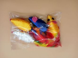Миша іграшка для кішок 6см кольорова нейлонова c пером 5шт NT 662