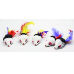 Миша іграшка для кішок натуральна з брязкальцем і пером 5 см 5шт SH03 NT685 Чорно-біла