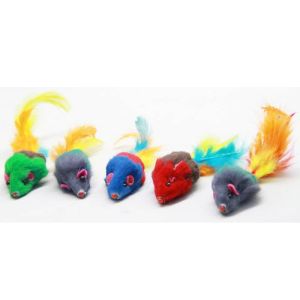 Миша іграшка для кішок натуральна з брязкальцем і пером 5 см 5шт SH03 NT685 Кольорова