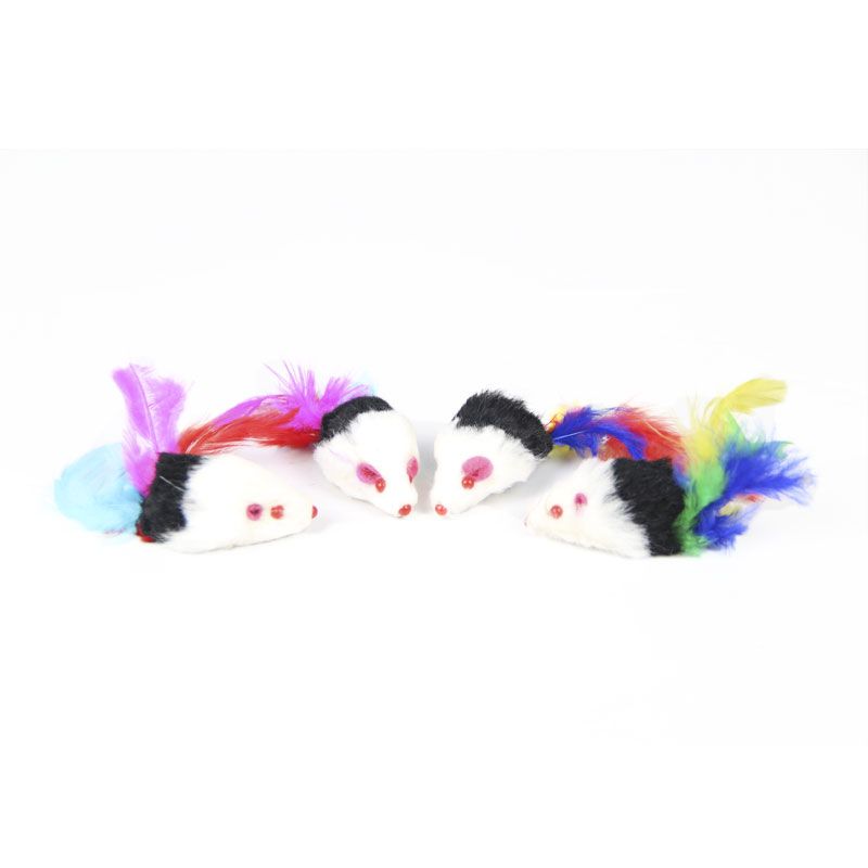 Миша іграшка для кішок з брязкальцем перо чорно-біла SH04N