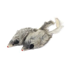 Миша сіра натуральна з пищалкою для кішок 10см 2шт