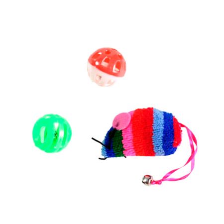 Набір іграшок для кішок кольорова миша і 2 мячика з брязкальцями