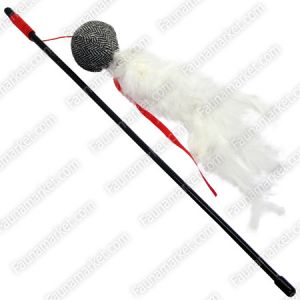 Вудка-дражнилка для кішок 25 см Мяч тканинний з пірям марабу