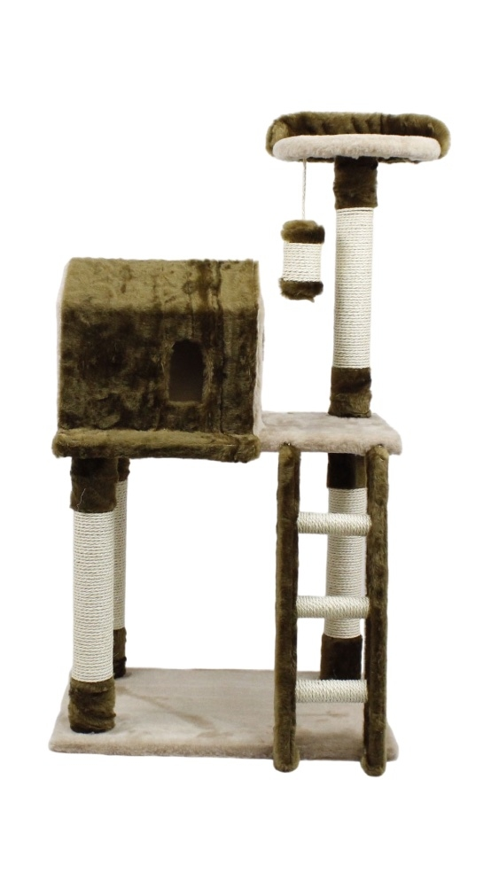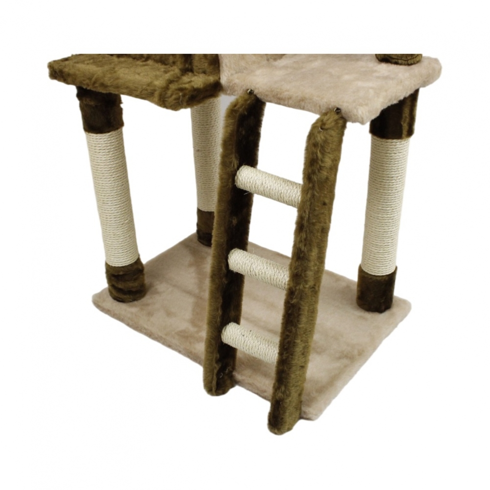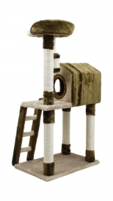 Будинок-драбинка Дряпка сизаль коричнево-бежева. Висота 118см, довжина 60см, ширина 40см. Має 4 стовпчики дряпки виготовлених із сизалю 50см кожен, діаметр 7см. 137см розмір сизалевой мотузки на якій вона кріпиться 10см. Для зручності підйому на крихті є сходи 55185см сходи 13см яких виготовлені з сизалю. 8см, щоб улюблениці було більш приємно спостерігати навколо. Матеріал хутра.