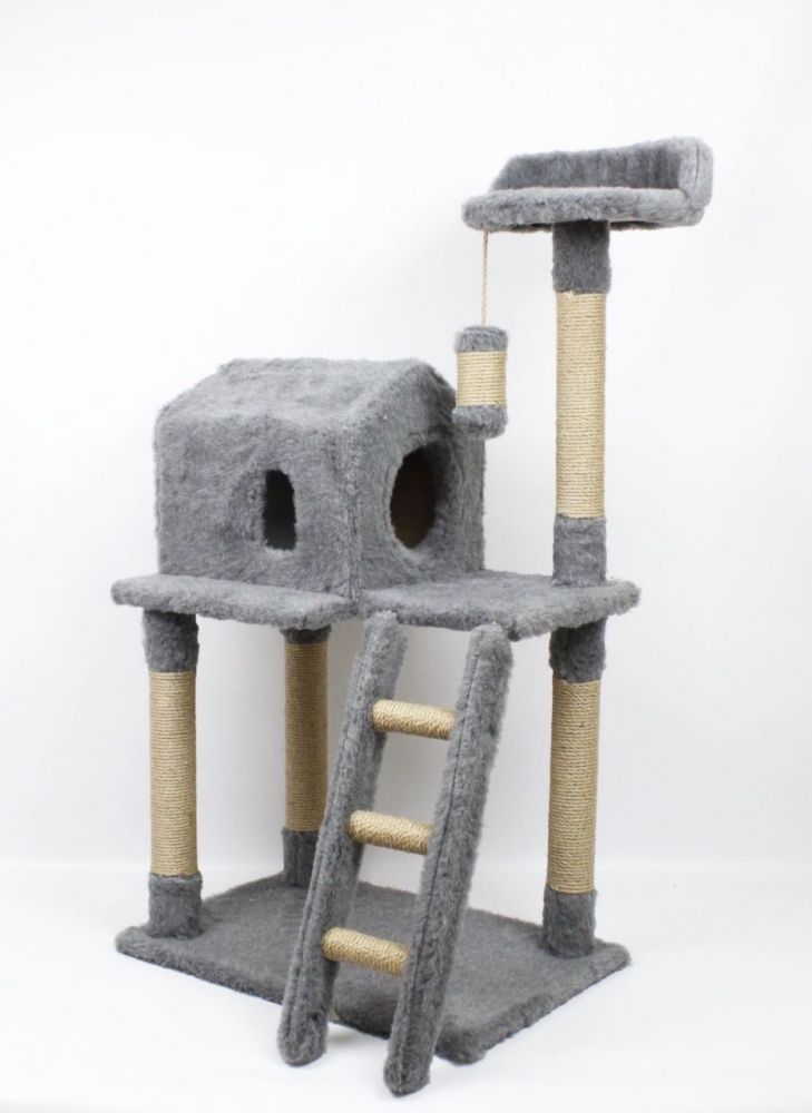 Когтеточка для кішки будинок + Драбинка джут Сіра