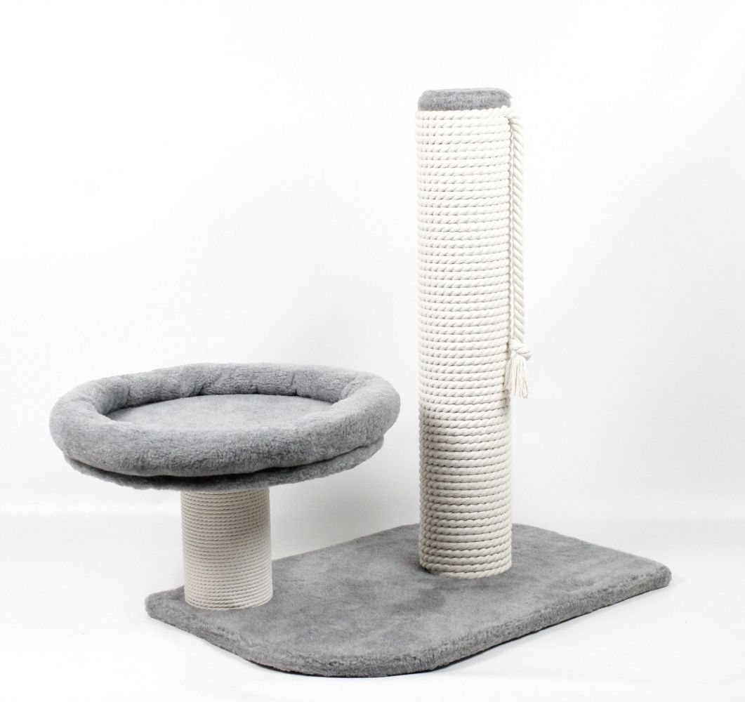 Дряпка Клеопатра - це потужний високий стовпчик з крутою обмоткою і міні стовпчик з комфортним, мяким лежаком. Така кігтеточка не займе багато місця у Вашому приміщенні, а завдяки міцності натуральних матеріалів довго прослужить рятівником вашого майна.Мяка обмотка не травмує кігті та подушечки лап і є абсолютно безпечною.Клеопатра Дряпка Сіре хутро, Біле бавовняна намотування.Основа 604065 см, 25см.Шезлонг 4040 см.