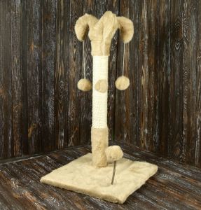 Арлекін Розмір:38х38х67см.D.стовпа: 6.2смМатеріал:штучнехутро,дерево, мотузка, пластик.Вага: 2.5 кг. Обємна вага: кг. Всі ми давно знаємо, що кіт в домі це радість, веселощі та щастя, але й, крім усього цього, є і шкоду (подряпані меблі, руки, шпалери або розідраний диван). У котів є природна потреба точити кігті, і він не вибирає об що. Для цього й потрібні Кігтєточки. Вони потрібні як для дорослих котів, так і для маленьких кошенят адже кігті в них гострі та постійно сверблять. Наша компанія пропонує до Вашої уваги просту, але дуже ефективну кігтєточку Арлекін. Стовпчик із прикольною шапочкою та трьома іграшками-кульками обмотаний натуральним канатом задовольнить потреби Ваших проказників. Ну а кулька на пружинці просто пік радості та блаженства.