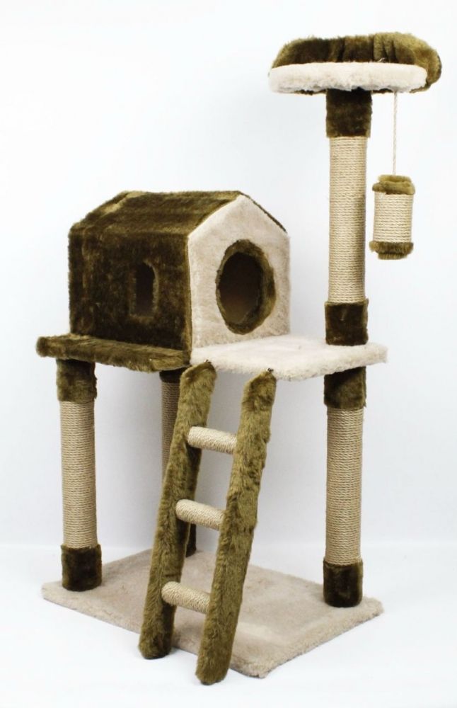 Когтеточка будинок + Драбинка, джут Коричнево-бежева