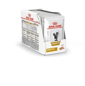 Ветеринарна дієта для котів при захворюваннях нижніх сечовивідних шляхівRoyal CaninUrinary SO Feline Pouches morsels in gravy -Повнораціонний дієтичний вологий корм для котів, який сприяє розчиненню струвітів і запобігає їхньому повторному утворенню завдяки своїй здатності до підкислення сечі та низькому вмістові магнію.Ідіопатичний цистит - завдяки високому вмісту вологи в раціоні, Urinary SO збільшує розведення сечі. Оскільки майже 64 випадків ЗНСШ у котів ідіопатичний цистит, у разі загострення слід надавати перевагу вологому харчуванню.Захворювання нижніх сечовивідних шляхівРозчинення струвітних каменів - раціон Urinary SO ефективно розчиняє струвітні камені.Низький рівень відносного перенасичення сечі (ВПС).Ненасичена сеча це середовище, в якому кристали не можуть розростатися. Отже, створюється середовище, несприятливе для утворення кристалів струвіту та оксалату кальцію.Розведення сечізменшує концентрацію струвітів та оксалатів кальцію в сечі. Також більший обєм сечі забезпечує регулярне вимивання сечового міхура.Цей продукт сприяє створенню в сечовидільної системи середовища, несприятливогодля формування як струвітних, так і оксалатних кристалів.ПоказанняСтрувітні камені: розчинення та запобігання рецидивамКамені оксалату кальцію: попередження рецидивуІдіопатичний цистит у котів (ІЦК)ПротипоказанняХронічна ниркова недостатність (ХНН)Серцева недостатність (коли є необхідність обмежити споживання натрію)Одночасний прийом препаратів, що підкислюють сечуРіст, вагітністьлактаціяРекомендаціїПеред початком споживання слід проконсультуватися з ветеринарним лікарем. Годування кормом Urinary SO від 5 до 12 тижнів для розчинення струвітних каменів. Для попередження рецидивів уролітазу курс лікування слід продовжувати ще не менше 6 місяців, при цьому необхідно регулярне проведення аналізів сечі. Після одужання рекомендується регулярний огляд у ветеринарного лікаря, за необхідності корм може бути призначений протягом всього життя. Памятайте, що тварині слід забезпечити постійний доступ до питної води.ПриміткиПерш ніж розпочати споживання нового раціону, необхідно перевірити функціонування нирок.ІнгредієнтиМясо та мясні субпродукти,злакові, екстракти рослинних протеїнів,субпродукти рослинного походження, мінеральні речовини,олії та жири,вуглеводи.