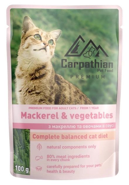 CARPATHIAN Вологий корм для котів макрель з овочами 100г
