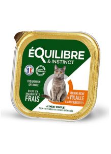 eQuilibre вологий корм для дорослих та стерилізованих кішок з мясом птиці та кабачком, ламістер, паштет 85 г