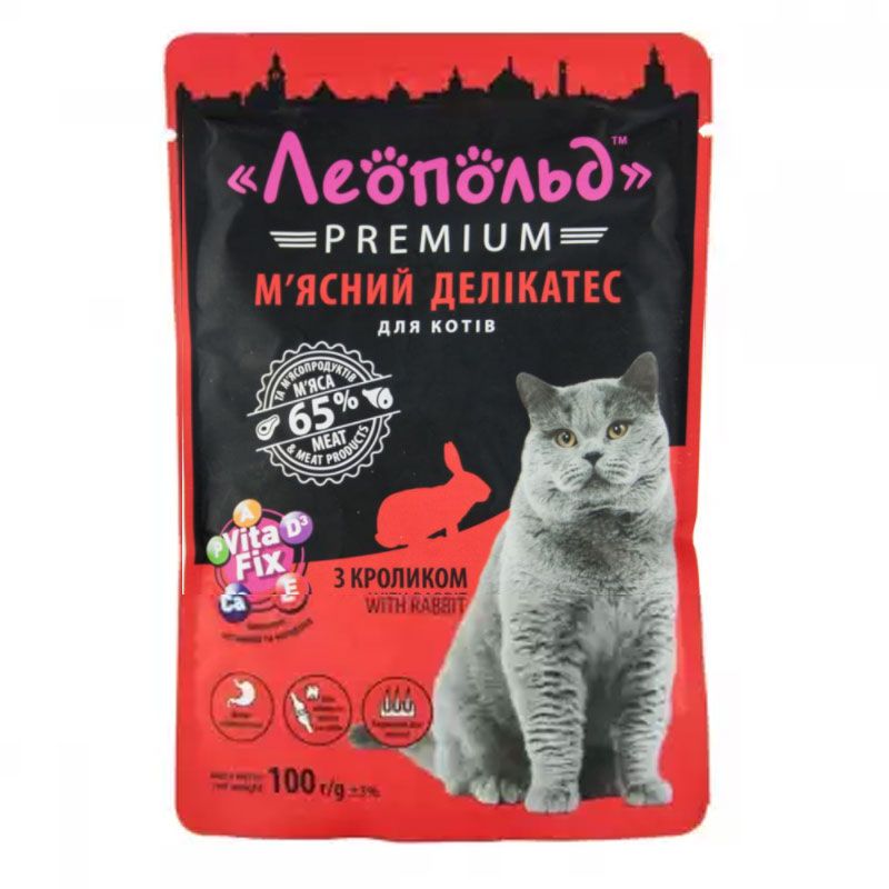 Леопольд premium Мясний делікатес з кроликом для кішок 100г 492348