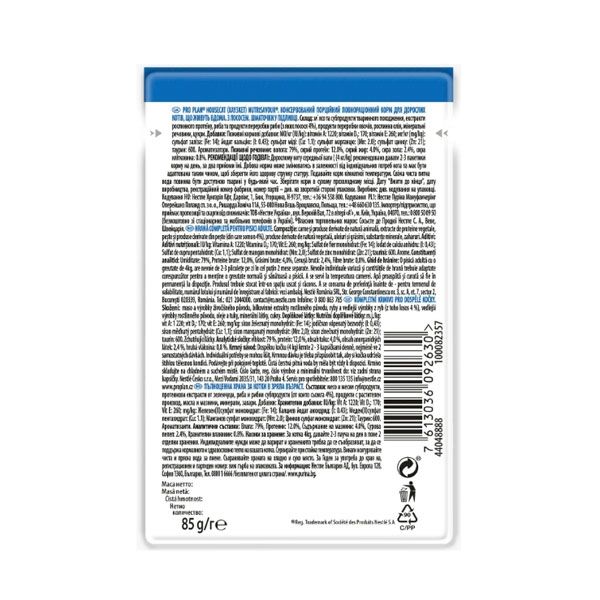 Вологий корм Purina Pro Plan (Пуріна Про План) Nutrisavour Housecat Adult призначений для котів, які живуть у приміщенні.Переваги:високоякісний, що поєднує всі необхідні поживні речовини, включно з вітамінами та мінеральними речовинамизнижує утворення грудок шерсті в травному тракті завдяки підвищеному вмісту в складі клітковинидопомагає знизити запах від котячого лоткамає відмінний смак, що подобається більшості котівСклад:мясо та субпродукти тваринного походження, екстракти рослинного протеїну, риба та продукти переробки риби (з яких 4 лосося), продукти переробки овочів, рослинні олії та тваринні жири, мінеральні речовини, цукор.