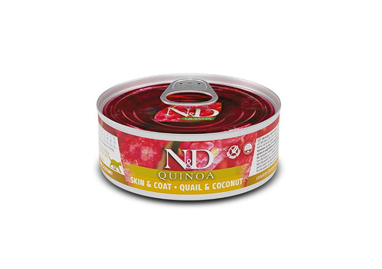 Вологий корм Farmina ND Quinoa Skin Coat Adult для котів для шкіри та шерсті, з перепелом, кіноа, кокосом та куркумою, 80 г Фарміна кет волог ND Quinoa SkinCoat ADULT дієт. харч, з перепелкіноа,кокоскуркума 02161