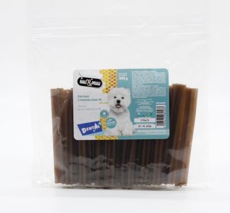 DENTAL з прополісом смачні та функціональні ласощі для собак, що підтримують здоровя порожнини рота.Наявність прополісу в прорізувачі DENTAL має антибактеріальну та протизапальну дію.Прорізувач DENTAL з прополісом - відмінний спосіб заохотити собаку, піклуючись про її здоровя та гігієну порожнини рота.