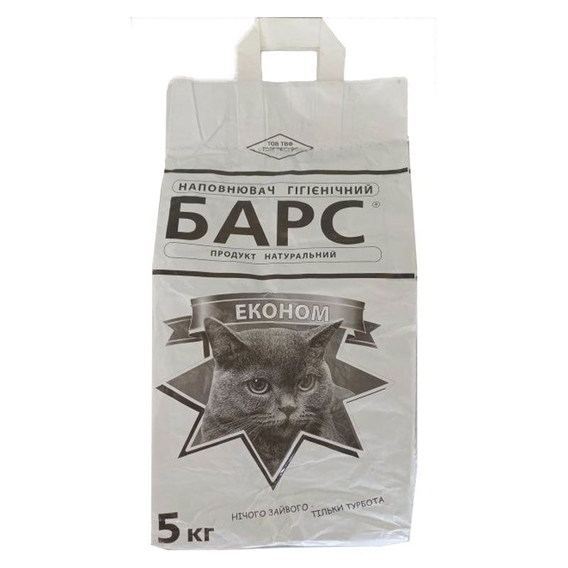 Барс Економ (стандарт) Комкующийся гігієнічний наповнювач для котячого туалетуВиробництво Україна. Розмір гранул 1.5 - 2.5 мм.Добре комкуется і замикає запах, не затримується на лапах і шерсті кішок, без запаху.Даний гігієнічний наповнювач для котячого туалету являє собою набір природних мінералів. Продукт характеризується антибактеріальними властивостями, поглинає неприємні запахи, вбирає вологу до 125 від своєї маси.Інструкція по застосуванню:Наповніть чистий і сухий лоток вмістом упаковки шаром 4-5 см.При використанні лотка з сіткою, досить насипати наповнювач під сітку шаром в 1 смНе рідше одного разу на добу прибирайте утворилися грудочки і тверді екскременти.Після збирання додайте необхідну кількість свіжого наповнювача.Не рекомендується викидати використаний наповнювач в каналізаційні системи