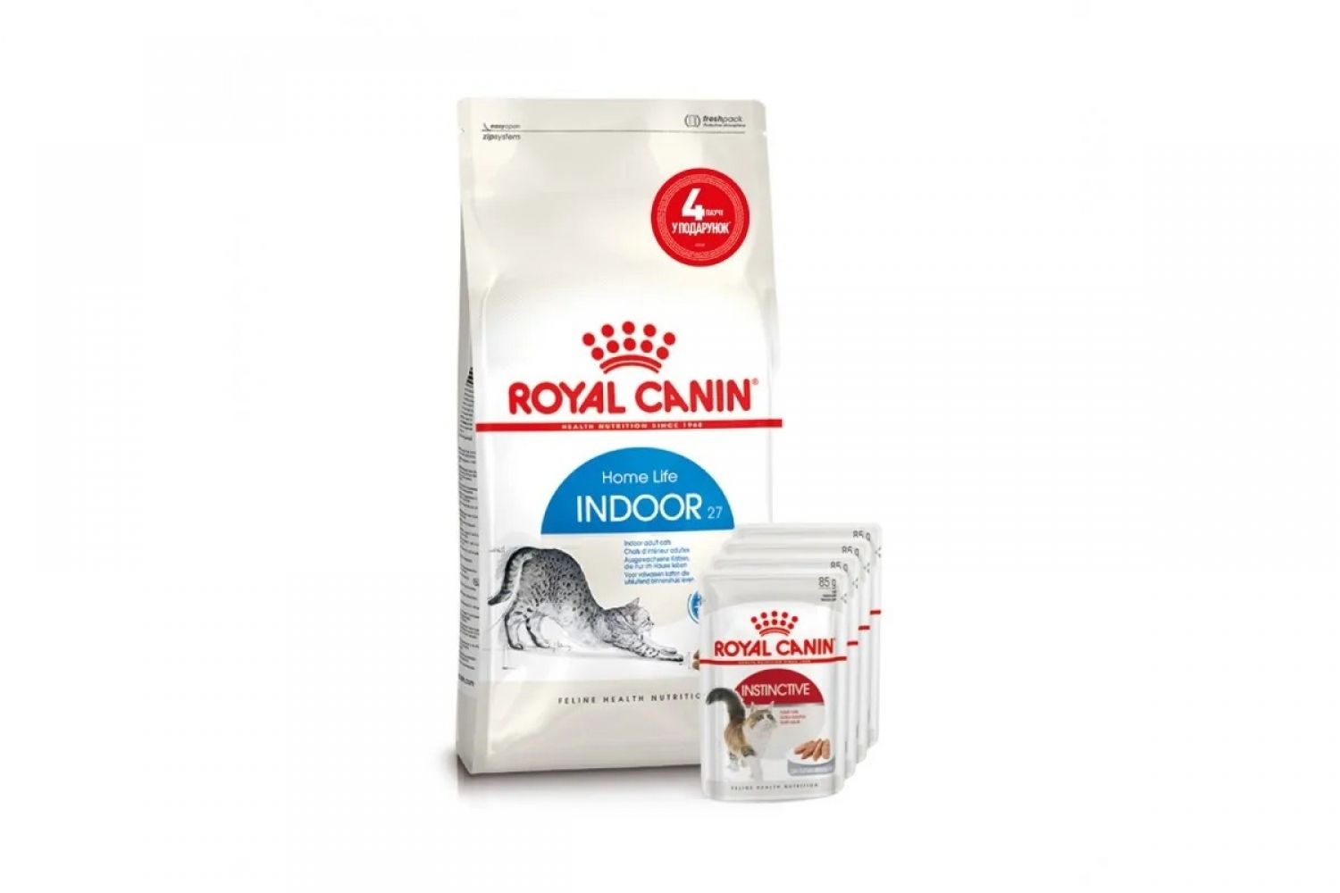 АКЦІЯ Royal Canin INDOOR для кішок у віці від 1 до 7 років набір корму 2 кг + 4 паучі