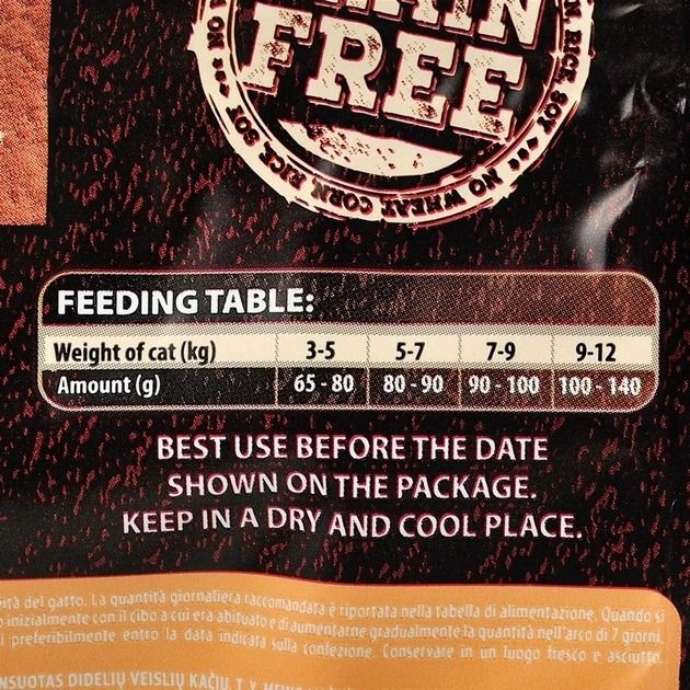 Carnilove Cat DuckTurkey Large повнораціонний збалансований беззерновий сухий корм класу холістик для дорослих кішок великих порід.Склад: борошно з мяса качки (32), борошно з мяса індички (18), жовтий горох (16), курячий жир (консервований токоферол, 11), качка без кісток (5), куряча печінка (3), лососева олія (1), тапіоковий крохмаль (3), яблука (6), морква (1), насіння льону (1), нут (1), оливкова олія (0,8), екстракт зелених губчастих молюсків (Perna canaliculus, 0,1), екстракт зеленого чаю (0,1), гідролізовані мушлі ракоподібних (джерело глюкозаміну, 0,026), хрящовий екстракт (джерело хондроїтину, 0,016), пивні дріжджі (джерело мананоолігосахаридів, 0,016), корінь цикорію (джерело фруктоолігосахаридів, 0,012), екстракт юки Шидигера (0,01), водорості (0,01), подорожник (0,01), чебрець (0,01), розмарин (0,01), орегано (0,01), журавлина (0,0008), чорниця (0,0008), малина (0,0008).Енергетична цінність: 3950 ккалкг. Омега-3: 0,25, Омега-6: 2.5.Рекомендації щодо годування:давати корм сухим або змочивши у теплій воді або бульйоні. Годувати кота необхідно тричі на день. Кількість корму може бути змінена залежно від віку та активності вашого кота. Коли годуєте кормом Carnilove вперше, змішуйте невелику кількість із попереднім кормом, і збільшуйте співвідношення поступово упродовж тижня. Завжди перевіряйте наявність свіжої води.