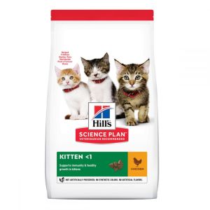 Hills Science Plan Kitten Chicken сухий корм для кошенят з куркоюПовнораціонний сухий корм з куркою для кошенят віком до 1 року. Являє собою комплексне збалансоване харчування, що забезпечує вихованця необхідними вітамінами і мікроелементами при особливих потребах його організму в період росту і розвитку.Переваги Hills Science Plan Kitten Chicken:Спеціально розроблений для задоволення енергетичних потреб зростаючих кошенят, завдяки високій калорійності допомагає забезпечувати їх достатньою енергієюВиготовлений з високоякісних інгредієнтів на основі мяса курки та індички-двох взаємодоповнюючих джерел протеїну, які відмінно засвоюються організмом кошеня, забезпечуючи його амінокислотами для формування міцних мязівЗбагачений вітамінами A, D3, E, з, калієм, магнієм, бета-каротином та іншими важливими мікроелементами, комплексно зміцнюють зростаючий організмМістить ненасичені жирні кислоти Омега - 3 і Омега-6, які роблять позитивний вплив на розумові здібності кошеня, стан його серцево-судинної системи, обмін речовин, шкіру і шерстьЗ додаванням бурякового жому-натурального джерела клітковини, дуже корисної для кишкових бактерій, що підтримують здоровя товстої кишки кошеняВключає в себе таурин, життєво важливу для кішки амінокислоту, яка підтримує її зір і серцево-судинну системуЗбалансований вміст мінералів забезпечує правильне формування зубів і кісток кошеняПротипоказання: тривале годування дорослих кішок, якщо у них немає потреби в підвищеній енергії.СкладБорошно з мяса курки та індички, Кукурудза, тваринний жир, дигест, мінерали, рибячий жир, суха мякоть буряка, насіння льону, рослинна олія, целюлоза.