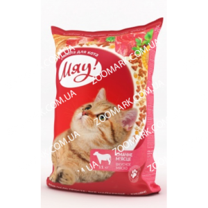 МЯУ повнораціонний сухий корм для дорослих кішок з мясомСклад: зернові та продукти їх переробки, мясо та субпродукти тваринногопоходження не менше 26 , жири та олії, мінерали, дріжджі, вітаміни.ДОБАВКИ (на 1 кг корму): Вітамін А (ретинол): 6 000 МО, Вітамін D 3(холекальциферол): 500 МО вітамін Е (альфа токоферол ацетат): 50 мг, вітамін К: 0,4мг, вітамін В 1 (тіамін): 5,0 мг, вітамін В 2 (рибофлавін): 3,0 мг, вітамін В 5 (D-пантотенат кальцію): 5,0 мг, вітамін РР (нікотинова кислота) 34,0 мг, вітамін В 6(піридоксин): 2,0 мг, фолієва кислота: 0,71 мг, вітамін В 12 (ціанокобаламін): 0,153 мг,біотин: 0,051 мг, сульфат міді пентагідрат: 30,3 мг, цинк сульфат гептагідрат: 373,1 мг,сульфат заліза: 82,3 мг, сульфат марганцю: 76,4 мг, таурин: 1205 мг. Технологічні добавки: антиоксидант, консервант. Сенсорні добавки: барвник.ГАРАНТОВАНІ ПОКАЗНИКИ: сирий протеїн - 25 , сирої жир - 12 , сираклітковина - 2 , сира зола - 7 , кальцій - 1,3 , фосфор - 1 .Енергетична цінність (калорійність) 100 г корму: 1479,72 кДж (354 ккал).Дата виготовлення, дата вжити до, номер партії вказані на упаковці.Зберігати в темному місці в закритому споживчій тарі при температурі від +5 С до+25 С і відносній вологості не більше 75 .