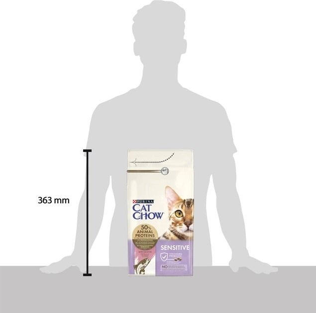 Сухий кормCat Chowз лососем - це на 100 повнораціонний та збалансований сухий корм для дорослих котів із чутливою шкірою та травленням.З 1926 року експертиPurinaдосліджували питання природних потреб домашніх улюбленців, щоб розробити повнораціонний корм, який підтримуватиме їх здоровя та відмінне самопочуття. Щодня на наших фабриках ми робимо декілька сотень перевірок якості продукції, тож ви можете бути впевнені у якості, на яку ви очікуєте. Завжди.Формула сухого кормуCat Chowретельно створювалася, аби 50 білків у складі були тваринного походження, а натуральні інгредієнти у складі продукту робили продукт ще більш апетитним та смачним.До складу корму для котівCat Chowвходять білок високої якості та натуральні інгредієнти: горох, морква, цільні злаки, цикорій та дріжджі.Cat Chowмістить у складі лосось. 50 білків у складі корму тваринного походження, що допомагає задовольнити потреби кота. Рецептура корму також включає в себе цикорій, який є натуральним джерелом пребіотику, направленим на покращення травлення, тож ваш котик отримає максимум користі з їжі, яку він споживає.Переваги цього корму для котів.Спеціально розроблена формула для котів з чутливим травленням.Омега-3 й Омега-6 жирні кислоти для здорової шкіри та шерсті.50 білків тваринного походження. Дбайливо створений на 50 з білків тваринного походження та з вмістом натуральних інгредієнтів.З натуральним пребіотиком. Формула, збагачена цикорієм, що є натуральним пребіотиком, допомагає покращити процес травлення вашого кота.На 100 повнораціонний та збалансований корм для котів, без додавання штучних барвників.Склад: зернові (цільнозернові 47), мясо та субпродукти тваринного походження (25), тваринні жири, риба та продукти переробки риби (4 лосося), екстракти рослинного протеїну, продукти переробки овочів, овочі (2 сушеного кореня цикорію, 0.07 сушеної моркви, що еквівалентно 0.4 моркви, 0.07 сушеного гороху, що еквівалентно 0.4 гороху), мінеральні речовини, дріжджі (0.3). Натуральні інгредієнти.Добавки: Поживні кормові добавки: МОкг(IUkg): вітамін А: 14 000 вітамін D3: 1 150 вітамін Е: 100 мгкг(mgkg): сульфат заліза: (Fe: 53) йодат кальцію: (I: 1.7) сульфат міді: (Cu: 10) сульфат марганцю: (Mn: 57) сульфат цинку: (Zn: 74) селеніт натрію: (Se: 0.12) таурин: 980.Aнтиоксиданти.Поживні речовини:сирий протеїн: 32сирий жир: 11сира зола: 8сира клітковина: 2.5Омега-3 жирні кислоти: 0.2Омега-6 жирні кислоти: 1.8Рекомендації щодо годівлі: див. таблицю на упаковці. Перший стовпчик Вага тварини (кгkg), другий стовпчик Кількість корму (грам на день). КормCat Chowнеобхідно включати до раціону тварини поступово протягом 7 днів. Середня добова норма розрахована для помірно активних котів за нормальної температури довкілля. Добова норма може змінюватись в залежності від індивідуальних потреб кота та має бути адаптована таким чином, щоб зберегти його струнку статуру. Свіжа чиста питна вода повинна бути доступною тварині у будь-який час.Рекомендації щодо зберігання.Зберігати корм для котів у сухому прохолодному місці. Дату Вжити до кінця, реєстраційний номер фабрики та номер партії: дивіться на упаковці.