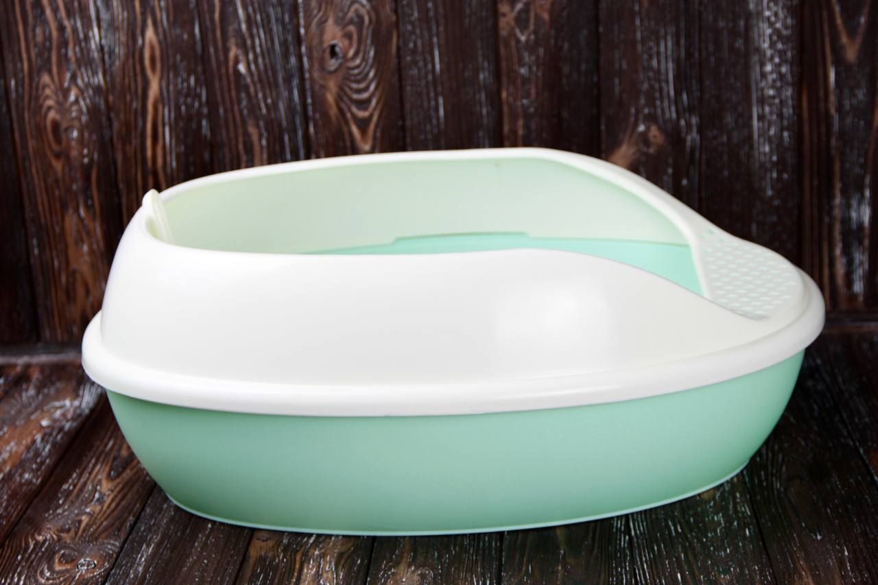 Туалет для кішок високий матовий з лопаткою мятний 52х38х20см