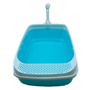 Туалет для котів високий квадрат борт з лопаткою Бірюзовий 52х38х20 см