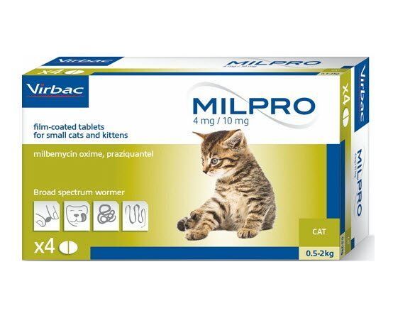 Милпро для котів і кошенят 4 таблетки мильбемицин, Вирбак від 0,5 кг 4мг10мг