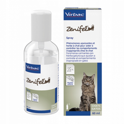 Инновационний спрей Зенифель (ZENIFEL), содержащий феромони и екстракт Nepeta cataria (кошачья мята), снимает острий стресс у кошки и уменьшает побочние еффекти, такие, как мочеиспускание и царапини в нових ситуациях.Котяча мята містить ефірні масла і непеталактон. Через цю комбінацію котяча мята має такий великий вплив на кішок. Це впливає на кішку, як феромон.Використання: Спрей Зенифель (ZENIFEL) містить заспокійливі феромони і екстракт Nepeta cataria, які в основному рекомендуються для того, щоб допомогти кішкам під час стресу. Спрей є ефективним інструментом для боротьби з раптовими стресовими подіями. Кожна пляшка обємом 20 мл містить не менше 130 доз-натискань.Попередження: тільки для зовнішнього застосування. Не розпиляти безпосередньо на тварин. Продукт може виглядати жовтуватим, що не впливає на ефективність препарату. Спрей Зеніфель (ZENIFEL) на спиртовій основі і ніколи не повинен використовуватися у випарнику. Застосування:Збовтати перед використанням.Розпорошити навколо кота.Завжди чекайте 15 хвилин, перш ніж дозволити вашій кішці йти туди, де ви розпорошили продукт.Виробник: Virbac, Франція