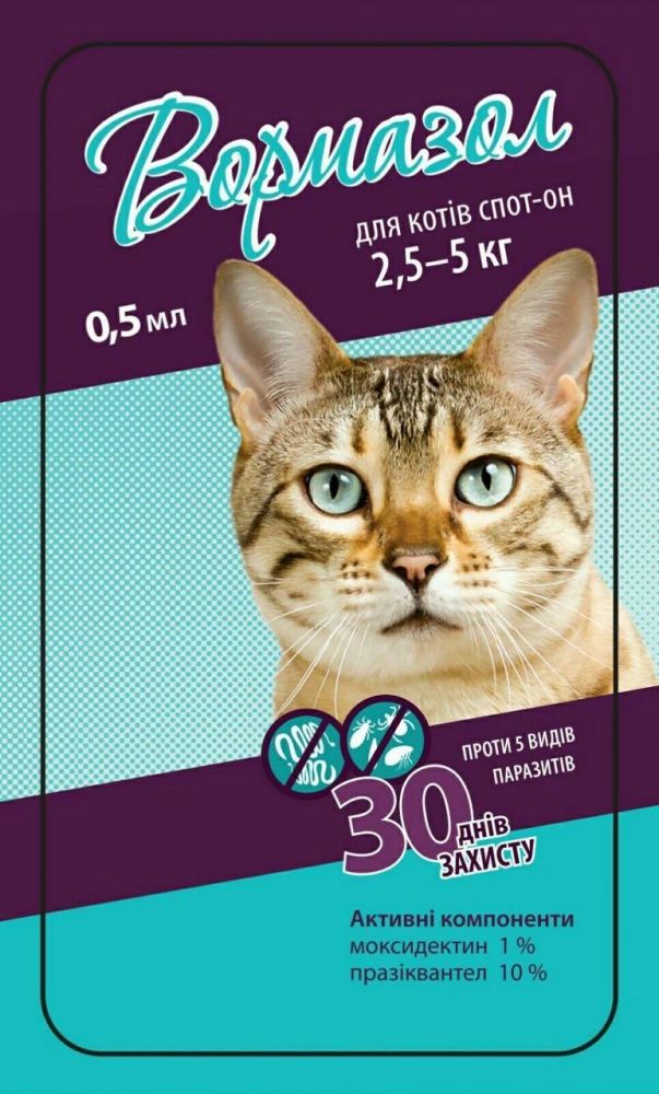 Вормазол-краплі для кішок від бліх кліщів і гельмінтів 0.5 мл 2.5-5кг