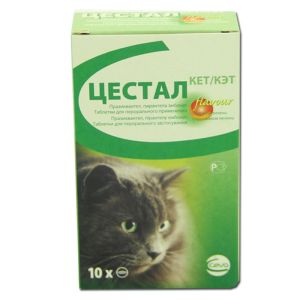 ОписТаблетки жовтувато-коричневого кольору з розділювальною смужкою посередині.Склад1 таблетка препарату містить діючі речовини:пірантелу ембонат 230 мгпразіквантел 20 мгДопоміжні речовини: цетил пальмітат, моногідрат лактози, попередньо желатинований крохмаль, натрію крохмаль гліколят типу А, сушені дріжджі, смакова добавка (порошок з свинячої печінки), стеарат магнію.Чому рекомендуємо купити антигельмінтик Сева Цестал КетЕфективний засіб для дегельмінтизації кішок при ураженні нематодами та цестодами: Toxocara cati, Toxascaris leonina, Ancylostoma tubaeforme, Uncinaria stenocephala Taenia taeniaeformis, Taenia pisiformis, Taenia hydatigena, Dipylidium caninum, Echinococcus multilocularis.Празиквантелшвидко всмоктується через зовнішню оболонку стрічкових гельмінтів, у результаті настає параліч паразитів.Пірантела ембонатдіє як холінергічний антагоніст, викликаючи спастичний параліч круглих гельмінтів шляхом деполяризуючої нервово-мязової блокади.ЗастосуванняДегельмінтизація котів при ураженні нематодами та цестодами:Toxocara cati, Toxascaris leonina(статевозрілі та личинкові форми)Ancylostoma tubaeforme, Uncinaria stenocephalaTaenia taeniaeformis, Taenia pisiformis, Taenia hydatigena, Dipylidium caninum, Echinococcus multilocularis, Joyeuxiella spp.(імагінальні та преімагінальні форми).ДозуванняПерорально в дозі 1 таблетка на 4 кг маси тіла (еквівалентно празіквантел 5 мгкг, пірантелу ембонату 57,5 мгкг).Коти масою тіла (кг)Дозування, к-сть таблеток1.0 - 2.02.0 - 4.014.0 - 6.01 6.0 - 8.02Таблетки згодовують котам одноразово примусово або з кормом. У дослідженні, проведеному на 30 котах, добровільне споживання таблеток було виявлено у 83 випадків. Попередньої голодної дієти дотримувати не потрібно.Для профілактики препарат необхідно застосовувати кожні три місяці одноразово.Для лікування препарат призначають одноразово. У випадку сильної інвазії лікування слід повторити через 14 днів.ПротипоказанняНе застосовувати тваринам із підвищеною чутливістю до компонентів препарату, ослабленим і хворим тваринам. Не застосовувати кошенятам менше 6-ти тижневого віку.ЗастереженняПобічна діяУ дуже рідкісних випадках (менш ніж 1 тварина на 10 000) можуть виникати легкі і транзиторні розлади травного тракту, такі як гіперсалівація та або блювота, а також легкі та тимчасові неврологічні розлади, такі як атаксія.Особливі застереження при використанніБлохи служать проміжними господарями для гельмінтів Dipylidium caninum. Зараження дипілідіозом може виникнути повторно, якщо не проводиться контроль проміжних господарів, таких як блохи та миші. Стійкість паразитів до певного класу антигельмінтних препаратів може виникнути після частого і багаторазового застосування препаратів з цього класу.Рекомендується здійснювати протипаразитарну обробку всіх тварин в домі одночасно.Застосування під час вагітності, лактаціїНе застосовувати вагітним тваринам. Може застосовуватись в період лактації.Взаємодія з іншими засобами та інші форми взаємодіїНе застосовувати одночасно з піперазином.Не призначати одночасно з органофосфатними інсектицидами та діетилкарбамазином. Через подібний механізм дії та токсичність, також не рекомендується застосовувати одночасно з морантелом та левамізолом.ЗберіганняЗберігати у сухому темному місці за температури від 15 до 25 С.Зберігати у недоступному для дітей та тварин місці, окремо від харчових продуктів і кормів.Термін придатності 3 роки.