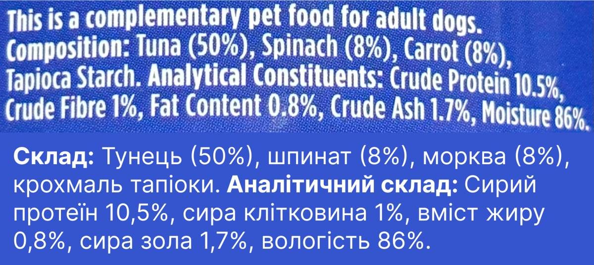 - Якісний тунець – джерело білка та Омега-3 для підтримки здорової шкіри та блискучої шерсті