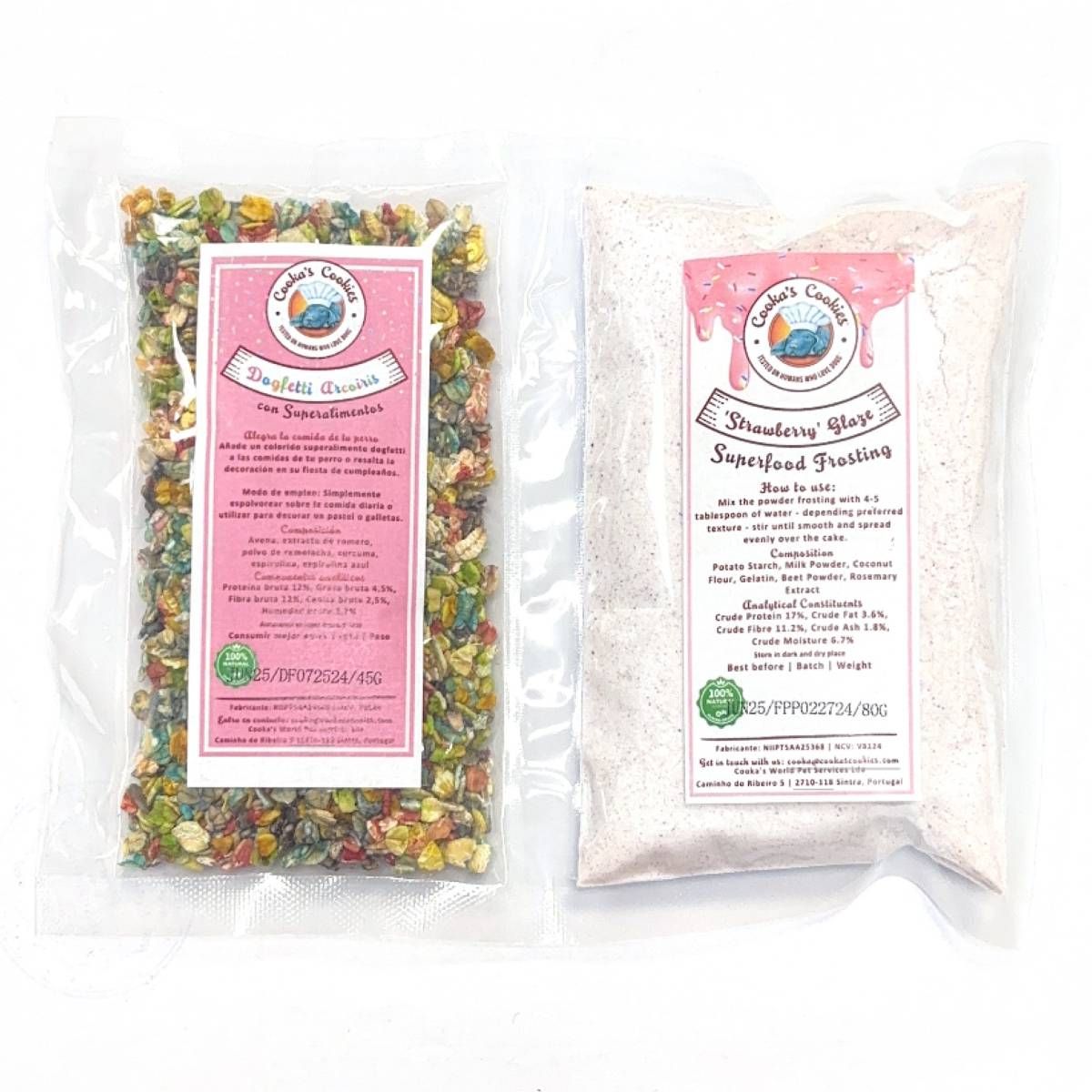 - Dogfetti (45 г): Яскрава та безпечна кондитерська посипка з натуральних інгредієнтів, які додадуть торту святкового вигляду.