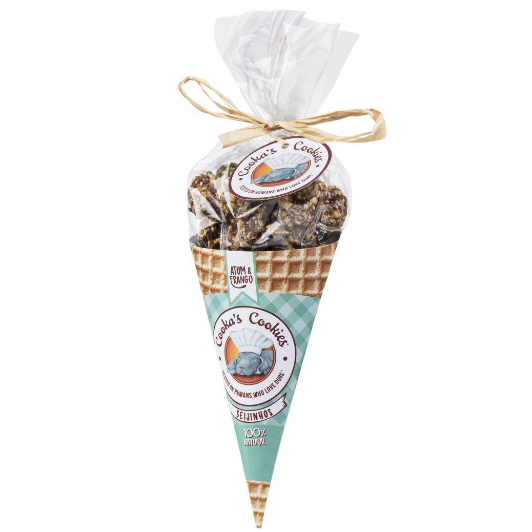 Cooka's Cookies Beijinhos – це ласощі, які б сподобалися і вам! Виготовлені з найкращих місцевих інгредієнтів, вони містять понад 40% свіжого курячого м'яса та більше 10% тунця. Кожне печиво – це вибух смаку та поживних речовин. А завдяки натуральному консерванту – розмарину – ви можете бути впевнені у безпеці та якості продукту. Печиво виготовлене з гіпоалергенних інгредієнтів, таких як курка, тунець, овес і лляне насіння. Вони легко засвоюються і не обтяжують шлунок.